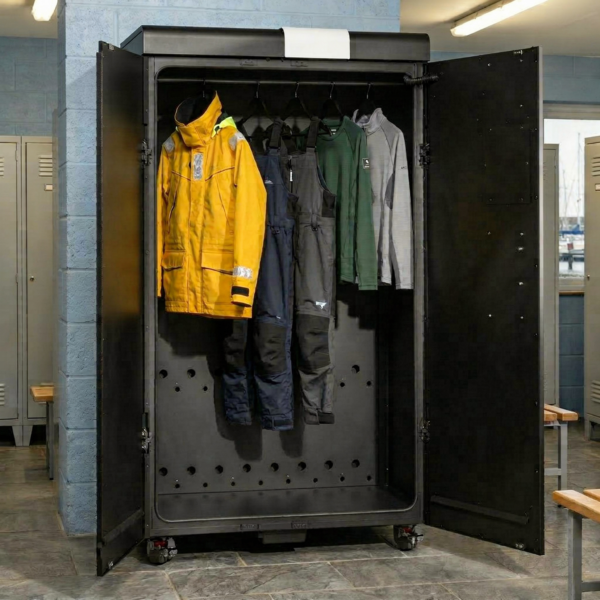 El rocío, el agua salada, la transpiración bajo los trajes de agua y las largas horas a bordo: tras una salida al mar o al rio, los equipos no están simplemente «mojados». Están impregnados de sal, bacterias marinas y una humedad residual que ni el aclarado ni el aire ambiente del puerto logran eliminar antes de la siguiente salida.