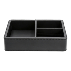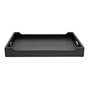Elegante y práctica, la colección Charme de accesorios en cuero sintético es ideal para el servicio de habitaciones o el almacenamiento. En negro mate, añade un toque de sofisticación al espacio.