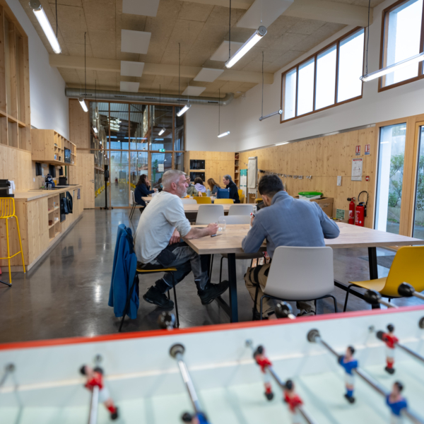 El Rep’air es nuestro espacio de encuentro: un lugar donde compartir la comida, descansar o simplemente reír con los compañeros. Además, dispone de una cocina equipada (microondas, frigoríficos, horno y placas), y también cuenta con zonas de ocio con dardos, ping-pong, boccia y cartas.
