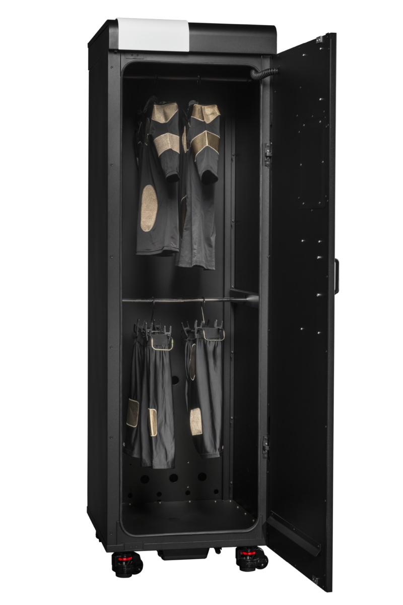 El armario Novven 3S Pack Esencial ha sido diseñado especialmente para garantizar la desinfección, el secado y la desodorización de los uniformes del EMS. Gracias a su tecnología patentada Smart Air Care, se convierte en un auténtico aliado diario para un mantenimiento óptimo, independientemente de la generación de uniformes utilizada.
