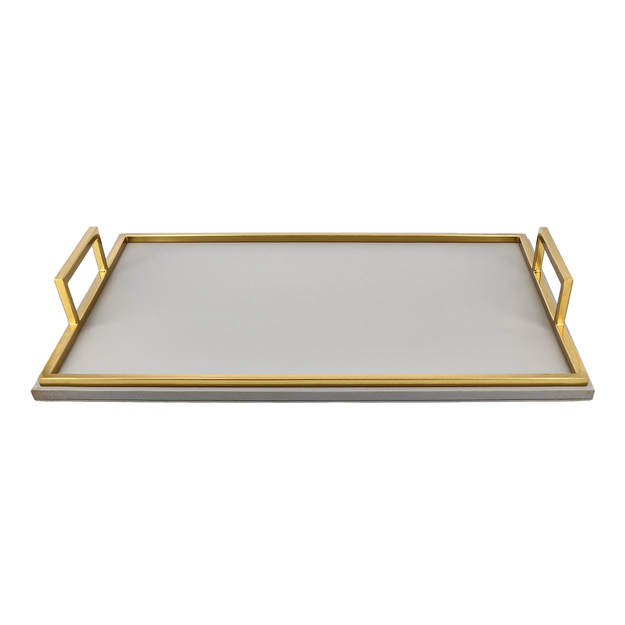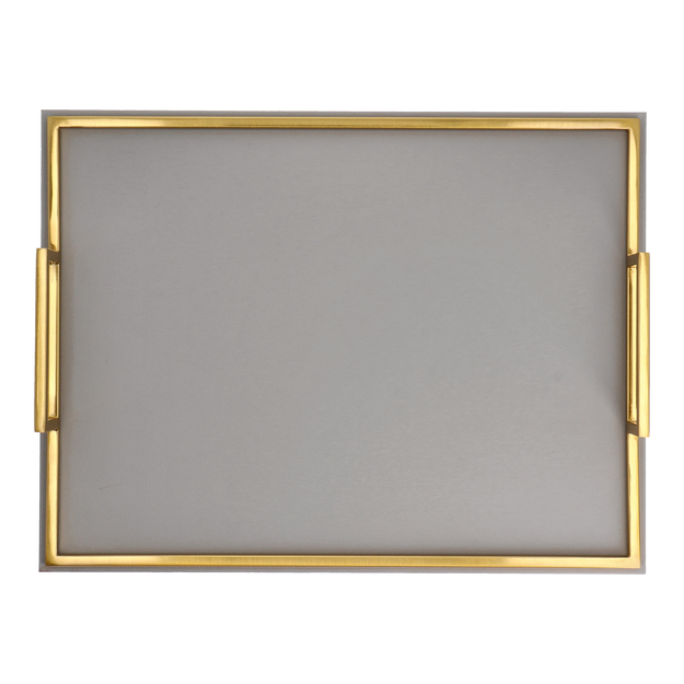 Bandeja de bienvenida Adesign Anglo: acabado en cuero y bronce para una elegancia atemporal. Un accesorio chic y funcional, perfecto para ofrecer a sus clientes un toque de refinamiento y confort desde su llegada.