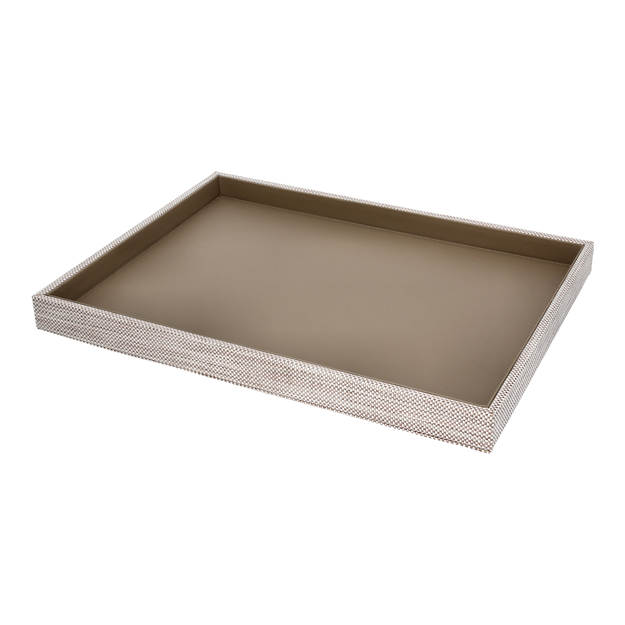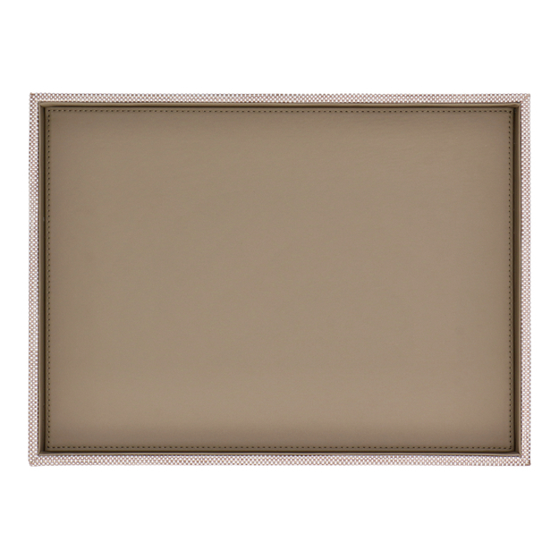 Bandeja de bienvenida Adesign Tribe para bebidas calientes y hervidor: elegancia y funcionalidad con interior en cuero sintético oliva y exterior tejido gris-beige en polipropileno, resistente al agua y perfecto para un servicio refinado.