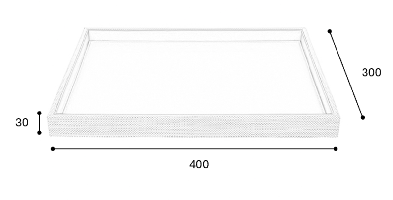 | Dimensiones | Alto del producto (mm) : 30Ancho del producto (mm) : 400Profundidad del producto (mm) : 300 |