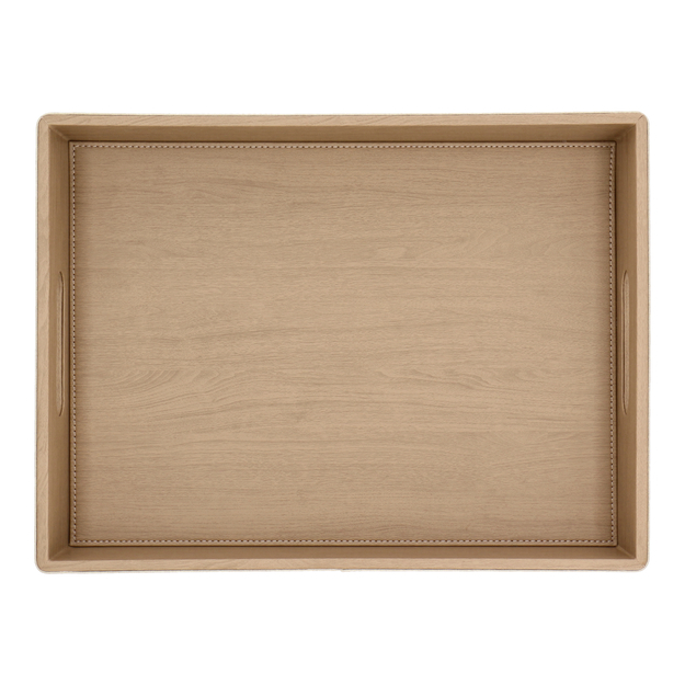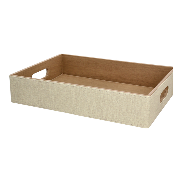 Bandeja con asas Adesign Kaizen: elegante y funcional, esta bandeja en cuero sintético con acabado bimaterial (lona beige y madera clara) es perfecta para presentación o servicio. Sus asas integradas facilitan el transporte mientras añaden un toque moderno y refinado.
