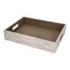 Bandeja con asas Adesign Tribe: diseño refinado con interior en polipiel oliva y exterior tejido en polipropileno gris-beige. Resistente al agua y práctica, combina elegancia y funcionalidad para un servicio impecable.