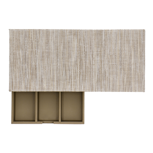 Bandeja con cajón Adesign Tribe con 3 compartimentos: un diseño elegante que combina polipiel oliva y acabado tejido en polipropileno gris-beige. Robusta, resistente al agua y perfecta para organizar con estilo.