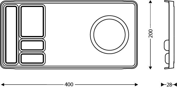 Dimensiones | Alto del producto (mm) : 27Ancho del producto (mm) : 397Profundidad del producto (mm) : 200 |
