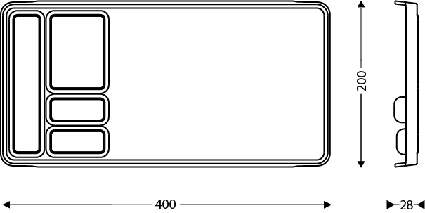 Dimensiones | Alto del producto (mm) : 27Ancho del producto (mm) : 397Profundidad del producto (mm) : 200 |
