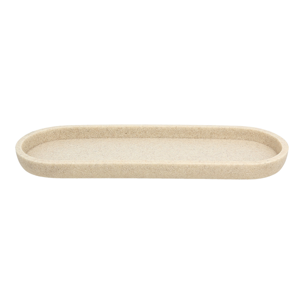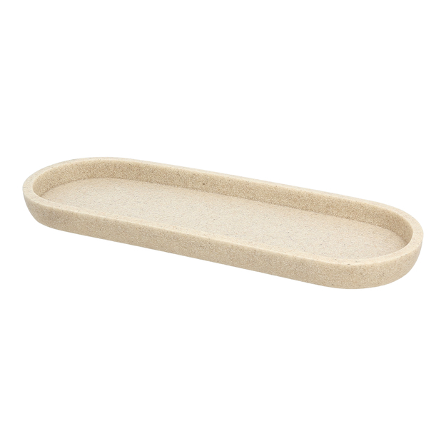 Bandeja rectangular Adesign Savanna: elegante y práctica, esta bandeja en melamina con acabado arena natural y bordes redondeados combina diseño moderno y seguridad. Ideal para añadir un toque refinado a su baño.