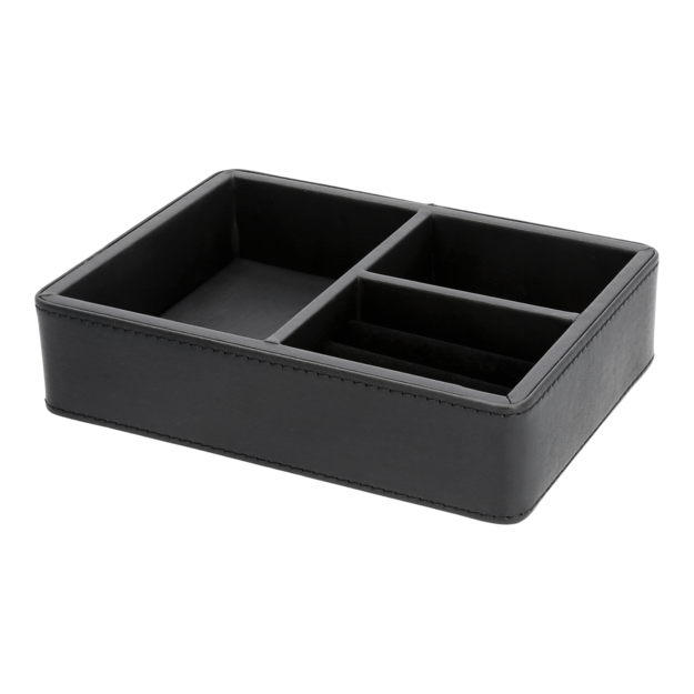 Joyero bandeja Adesign Charme: elegante y funcional, este joyero negro en cuero sintético con 3 compartimentos y acabado interior en terciopelo ofrece un almacenamiento refinado para las joyas en hoteles, combinando sofisticación y protección.