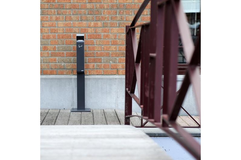 Kit que incluye una base, un pie y los elementos de fijación al suelo para el cenicero mural JVD slim 3L 8991452 (cenicero no incluido). Adecuado para uso en exteriores.