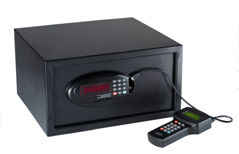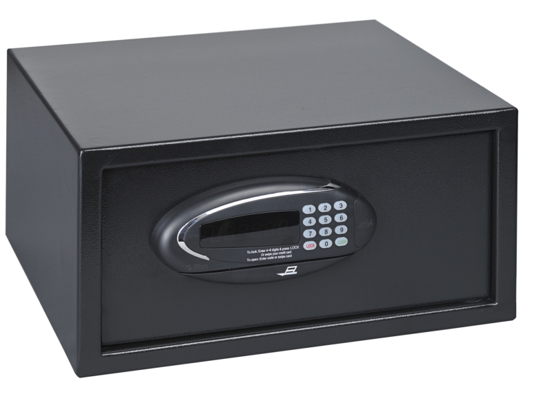 Caja fuerte Guardian con cierre mediante código o tarjeta magnética. Puede alojar un ordenador portátil de 15".