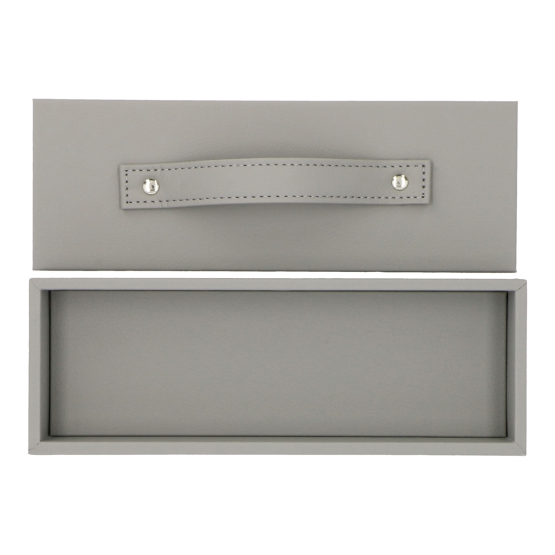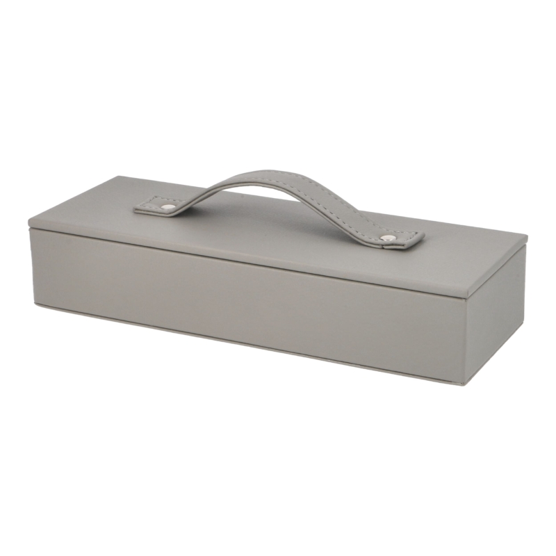 Caja rectangular Adesign Anglo: acabado en cuero gris claro para un estilo elegante y refinado. Ideal para guardar un mando a distancia u otros accesorios, aporta un toque de lujo discreto a cada habitación, combinando practicidad y sofisticación.