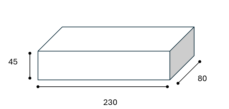 | Dimensiones | Alto del producto (mm) : 45Ancho del producto (mm) : 230Profundidad del producto (mm) : 80 |