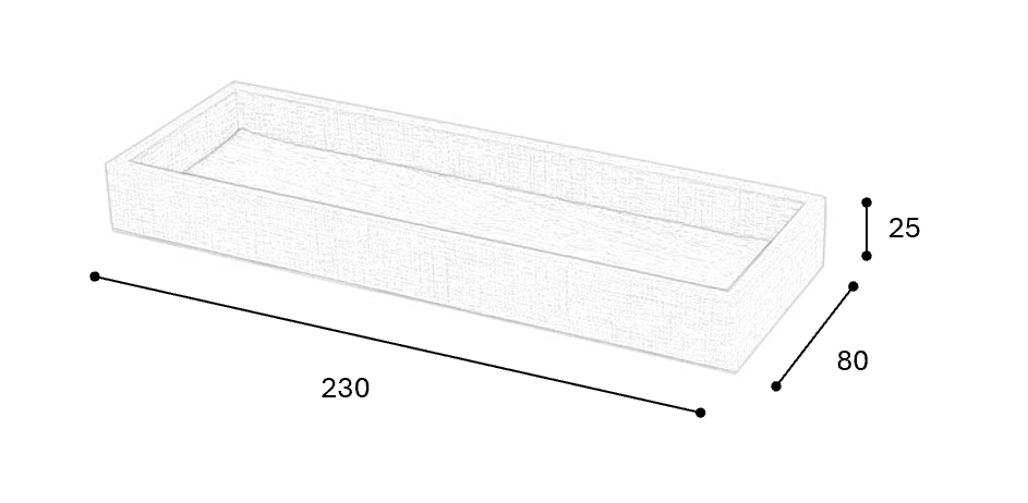| Dimensiones | Alto del producto (mm) : 25Ancho del producto (mm) : 230Profundidad del producto (mm) : 80 |