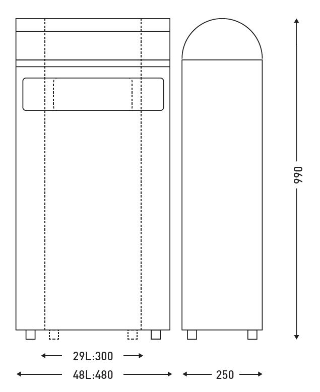 Dimensiones | Alto del producto (mm) : 990Ancho del producto (mm) : 480Profundidad del producto (mm) : 250 |