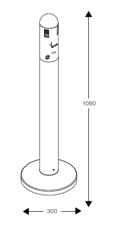 Cenicero tubular 3L de pie. Exterior en acero galvanizado y cubeta interior en zinc. Este cenicero está equipado con un sistema de cierre con llave. Incluye kit de fijación al suelo. La capacidad de este cenicero es de aproximadamente 900 colillas.