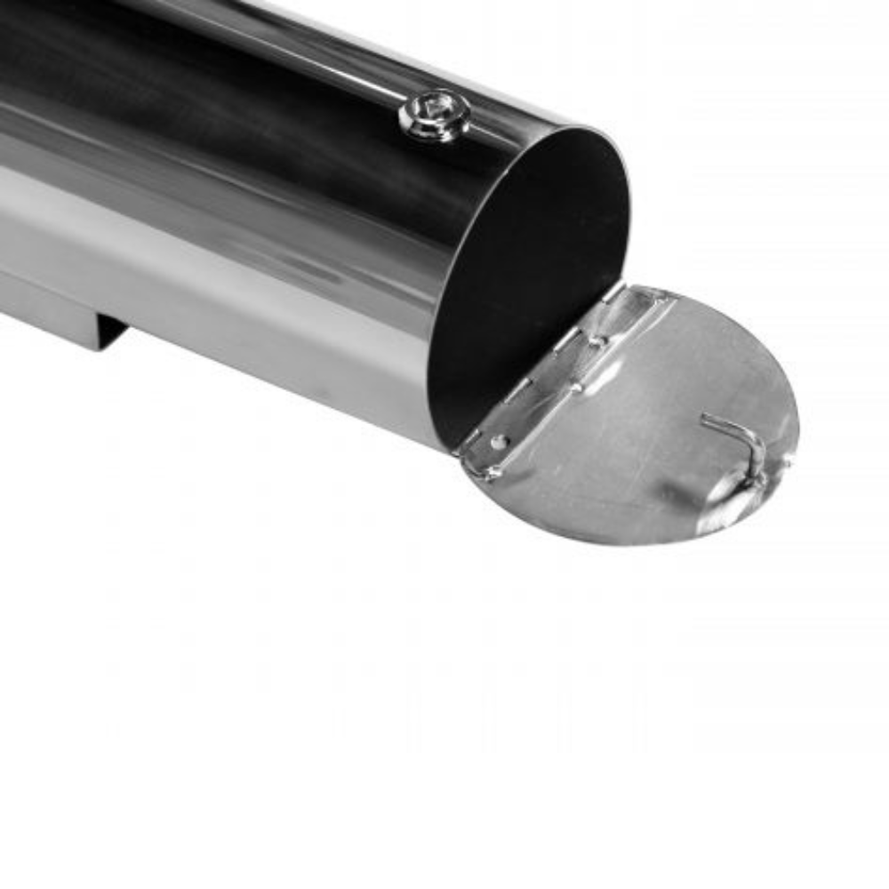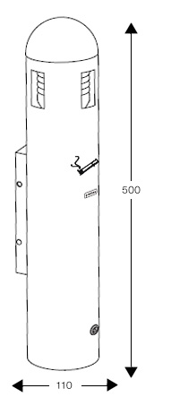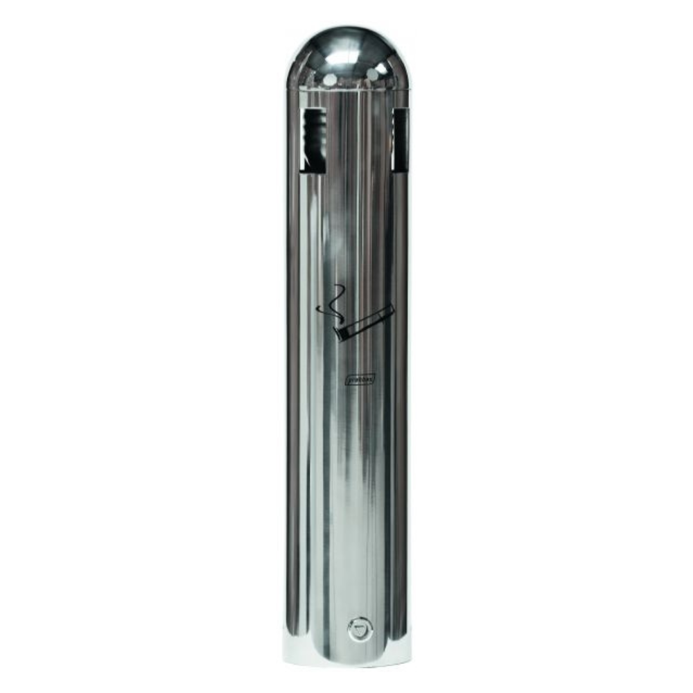 Cenicero tubular mural 1,8L en acero inoxidable 304. Diseñado para limitar la infiltración de agua de lluvia. Embudo interior para sofocar rápidamente el humo. Construcción robusta en acero inoxidable 304. Kit de fijación a pared incluido.