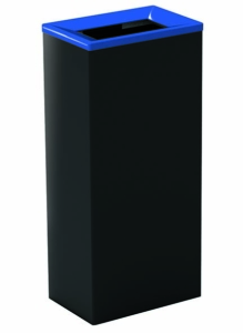 Contenedor 60L negro con 3 cubetas: 2 compartimentos de 15L y 1 compartimento de 30L. Las cubetas son extraíbles y de acero galvanizado. Se suministran adhesivos de clasificación.