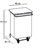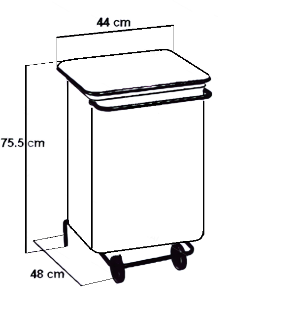 Contenedor móvil de 70L en acero inoxidable brillante con pedal y asa en acero con recubrimiento epoxi. Apertura frontal para facilitar la evacuación de la bolsa de residuos.