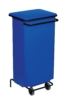 Contenedor con ruedas de acero azul de 110L ideal para la clasificación selectiva. Apertura frontal para facilitar la extracción de la bolsa de residuos.