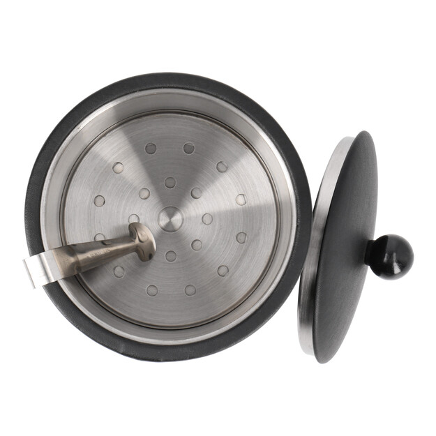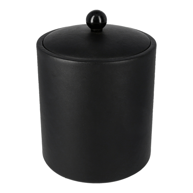 Cubitera ADesign Charme, 1,0L: Esta cubitera de acero inoxidable 304 con capacidad de 1L, equipada con una pinza incluida y un pomo negro, está revestida de cuero sintético negro. Ideal para hoteles, combina elegancia, durabilidad y funcionalidad para un servicio de calidad.