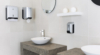 Dispensador central Maxi Cleanline gris metalizado. Capacidad para bobina de 450 servicios (diámetro 205 mm). Fabricado al 100 % en plástico reciclado.