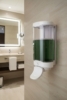 Dispensador de jabón Crystal 1 L con palanca. Equipado con una bomba de silicona de larga duración. Dosificación de 1 ml de jabón por pulsación.