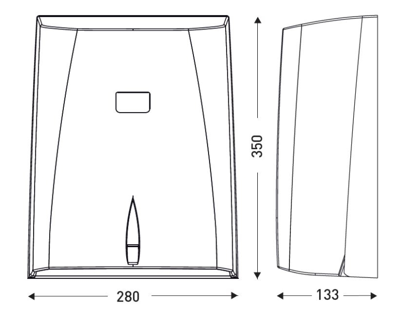 | Dimensiones | Alto del producto (mm) : 350Ancho del producto (mm) : 280Profundidad del producto (mm) : 133 |