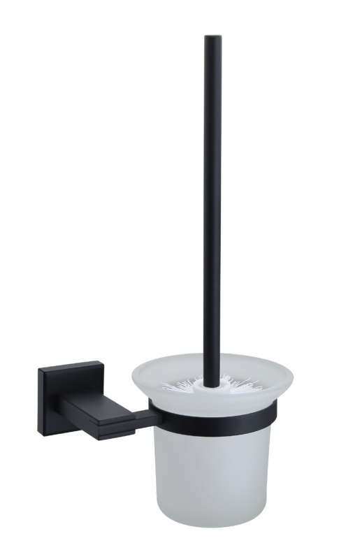 Escobillero de baño mural Argo negro mate en acero inoxidable 304 + escobilla blanca