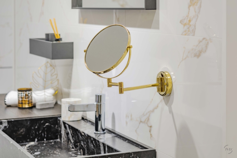 Espejo Fiesta cromado mural de doble cara (normal y aumento x3) con brazo tubular de latón cromado.