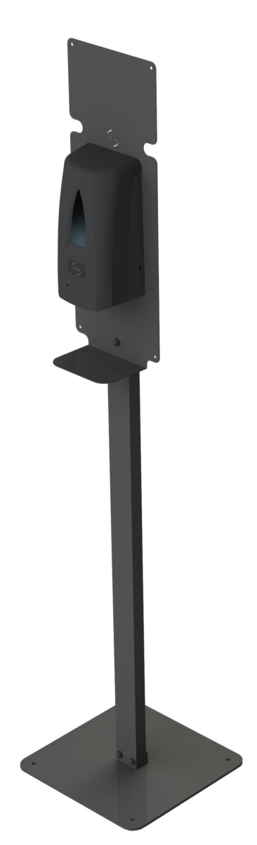 Estación de desinfección de manos muy estable con base de 6 kg fabricada en Francia. Incluye un dispensador de gel automático Yaliss negro mate con una capacidad de 1 L. Accesible para personas con movilidad reducida (PMR).