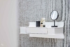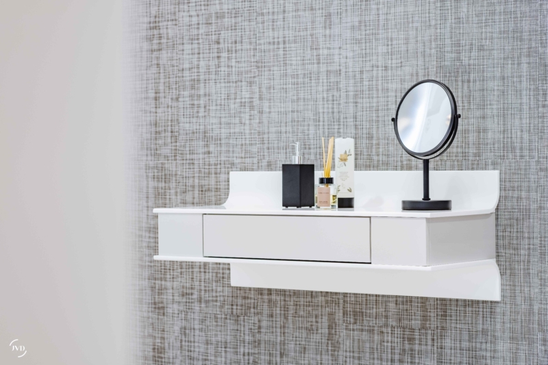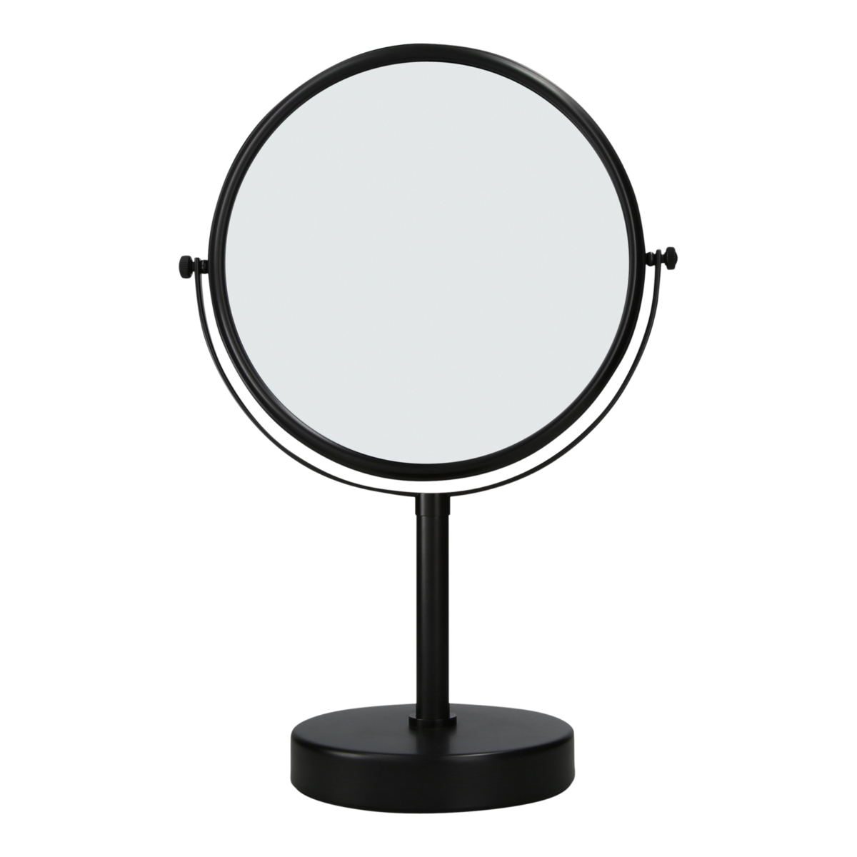 Espejo FIESTA negro mate de pie, doble cara (normal y visión x3) con brazo en latón cromado tubular.