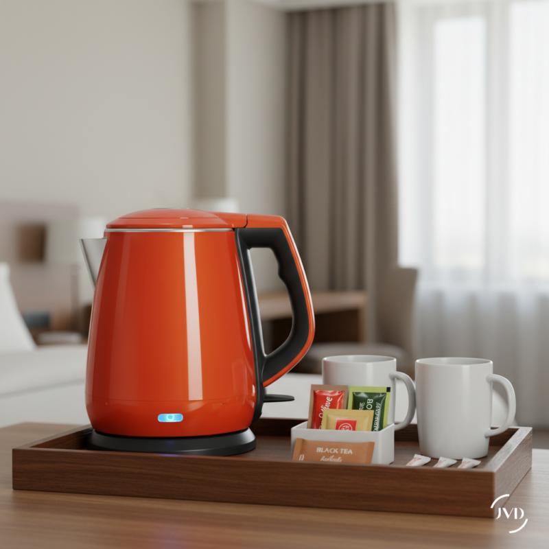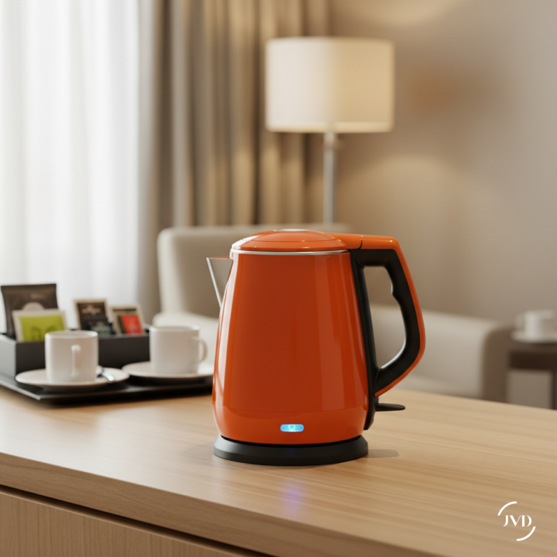 El hervidor Allure Naranja JVD combina diseño audaz con rendimiento práctico, ideal para cualquier habitación de hotel. Con su cuerpo de doble pared cool-touch e interior de acero inoxidable SUS304, garantiza seguridad e higiene. El apagado automático lo hace fácil de mantener, intuitivo para los huéspedes y sin complicaciones para el personal. Su color naranja vibrante aporta un toque moderno y cálido a los interiores hoteleros.