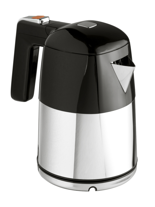 Hervidor Diva 1L Inox 1500 W con interior 100% Inox 304 y equipado con doble pared. Función de apagado automático al hervir y en vacío, y rotación de 360° sobre su base. El hervidor cuenta con un piloto de funcionamiento y un cable de 60 cm de longitud.