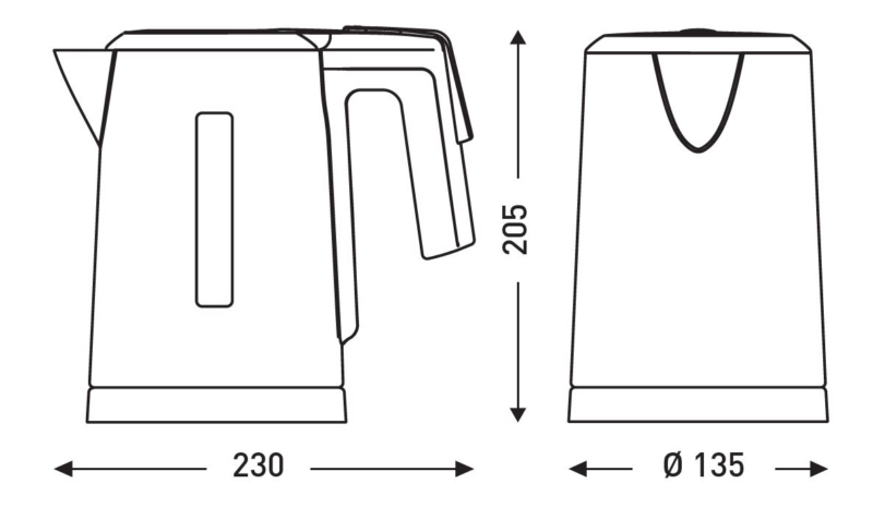 | Dimensiones | Alto del producto (mm) : 205Profundidad del producto (mm) : 230Diámetro (mm) : 135 |
