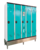 Bloque de 4 taquillas secadoras de 400 mm de ancho cada una, que garantiza una separación efectiva entre ropa limpia y sucia. Compacto, resistente y adecuado para entornos profesionales, facilita la higiene y organización en industrias exigentes.