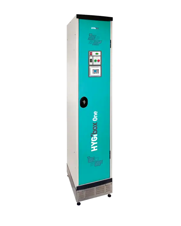 Taquilla secadora compacta, 300 mm de ancho, diseñada para integrarse en las industrias más exigentes (alimentaria, farmacéutica, energía). Asegura almacenamiento, secado, desodorización y desinfección de uniformes y equipos.