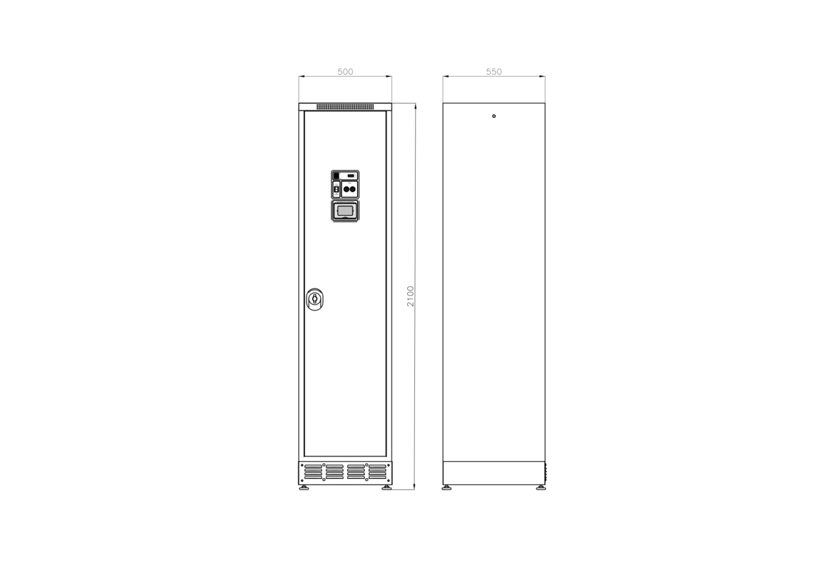 Taquilla secadora de 500 mm de ancho, que garantiza la máxima comodidad para almacenar prendas voluminosas con separación para ropa limpia y sucia. Asegura el almacenamiento, secado, desodorización y desinfección de la ropa y el equipo.