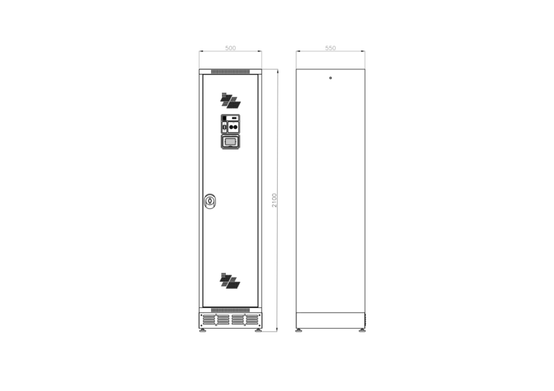 Taquilla secadora de 500 mm de ancho, que garantiza la máxima comodidad para almacenar prendas voluminosas con separación para ropa limpia y sucia. Asegura el almacenamiento, secado, desodorización y desinfección de la ropa y el equipo.