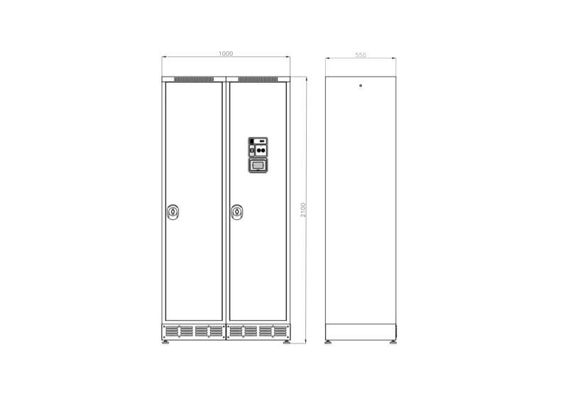 - Taquilla secadora que asegura el secado, desodorización y desinfección de uniformes y equipos.