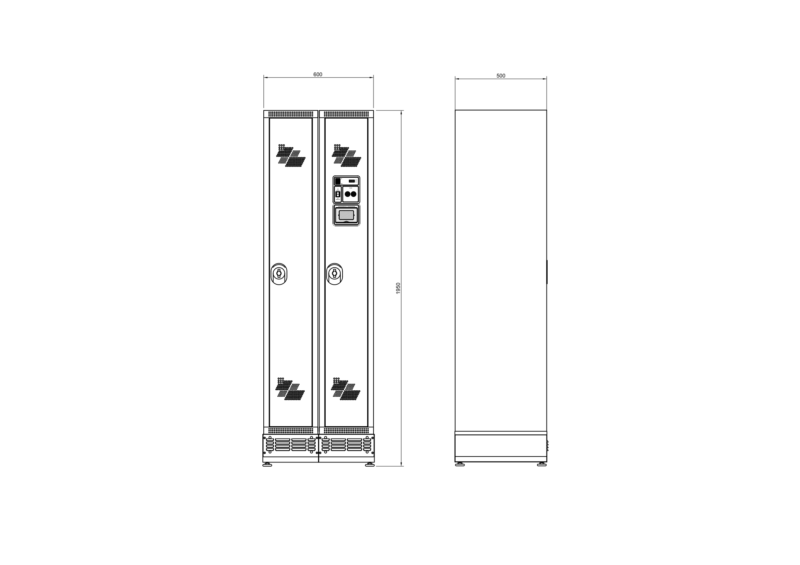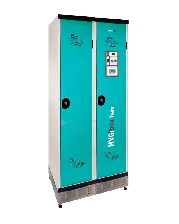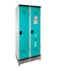 Bloque de 2 taquillas secadoras de 300 mm, aptas para industrias alimentaria, farmacéutica y energética. Aseguran almacenamiento, secado, desodorización y desinfección de uniformes y equipos para una higiene óptima en entornos profesionales.