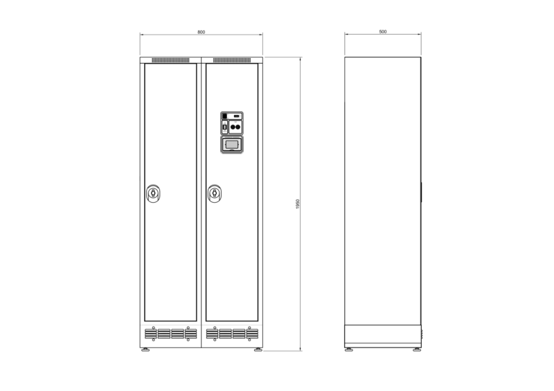 - Taquilla secadora que asegura el secado, desodorización y desinfección de uniformes y equipos.