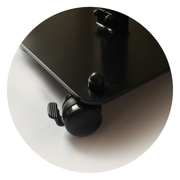 Kit que incluye 4 ruedas + tornillos (2 con freno, 2 estándar) para fijar a la estación de desinfección de manos. Compatible con todas nuestras estaciones. Adecuado para uso en interiores.
