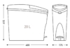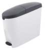 Ladybox papelera de higiene femenina de 20 L en polipropileno para uso intensivo. Apertura con pedal. Tapa gris y cubeta de recogida blanca. Esta papelera dispone de un aro de sujeción para la bolsa en el interior de la cubeta.