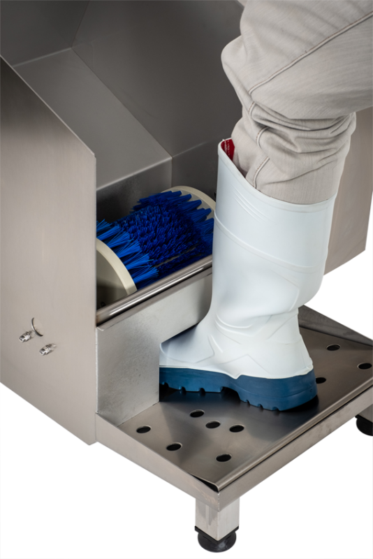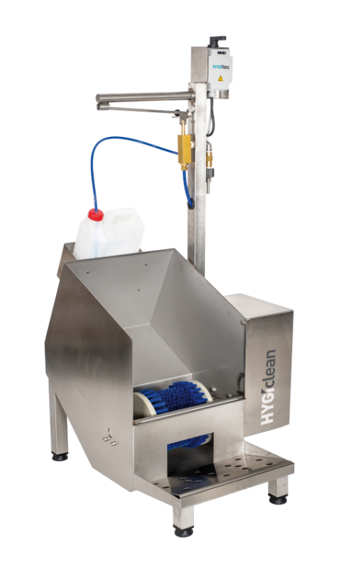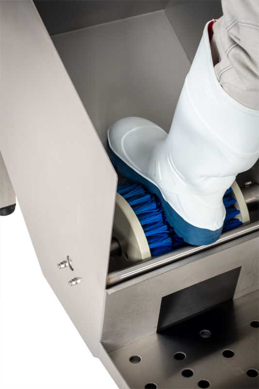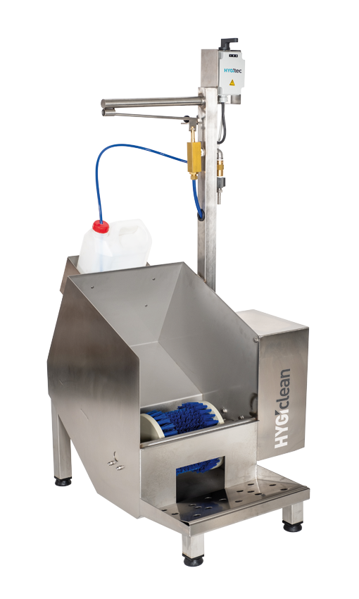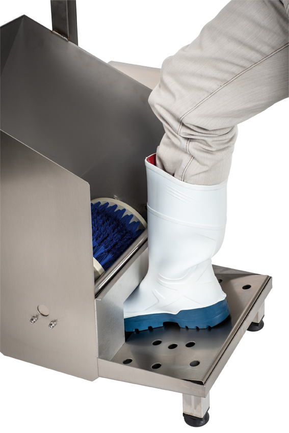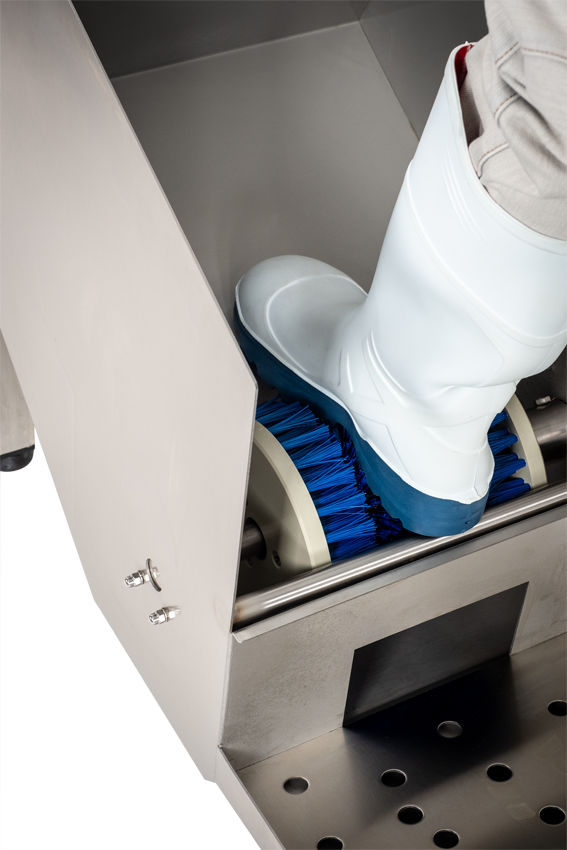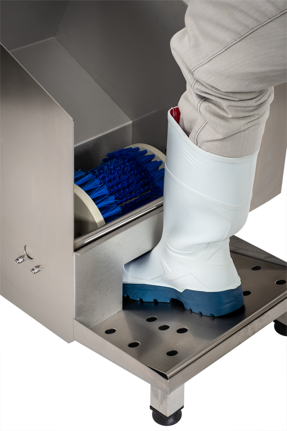 HYGIclean lava y sanea las suelas de botas y zapatos gracias a su sistema de tres cepillos motorizados.
