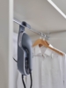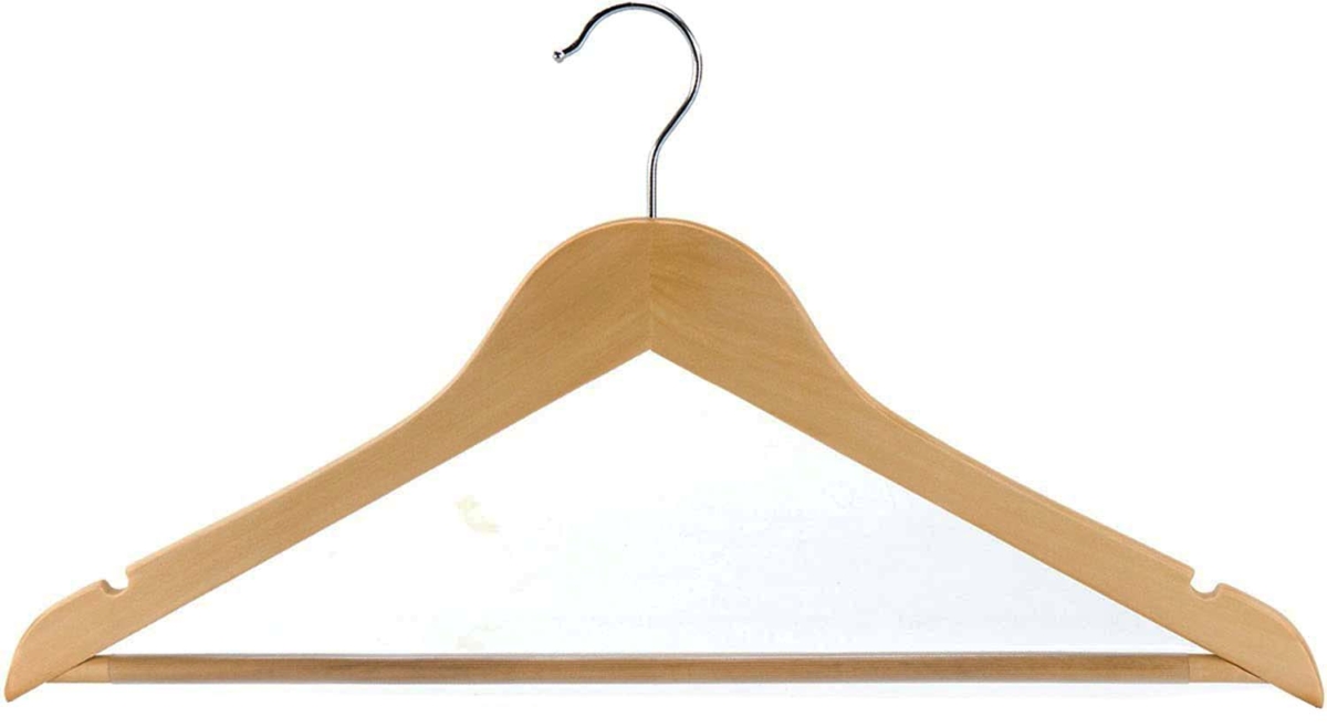 Percha de madera natural para armario, con barra y muescas.