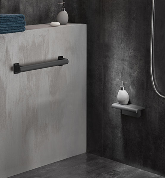 METIS Gama PMR barra de ducha en T o L. Equipamiento intercambiable según las necesidades del usuario.