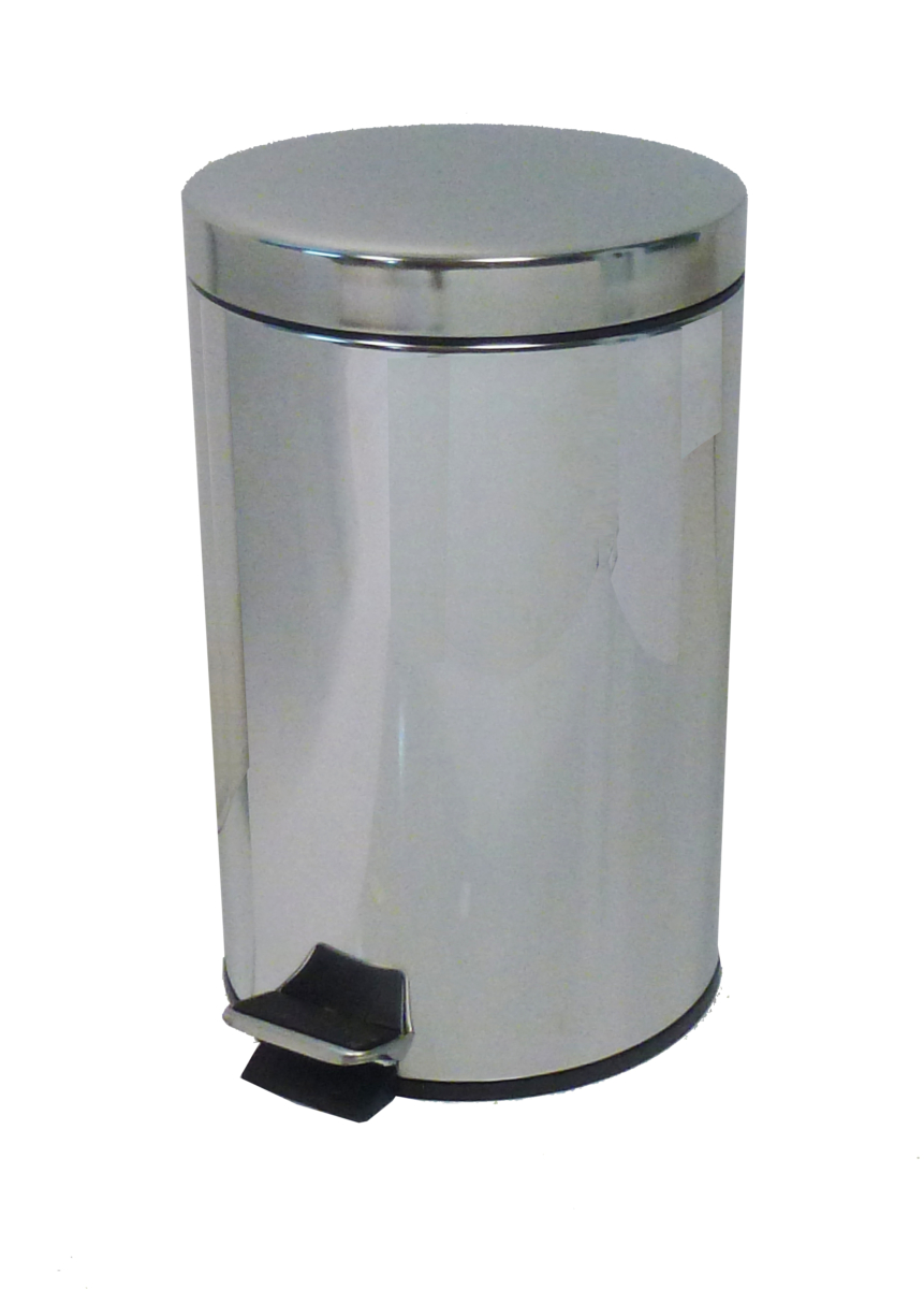 Contenedor con pedal 12L, acero inoxidable con acabado espejo. Exterior en metal e interior en plástico negro. Protección de caucho en la base.