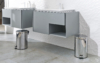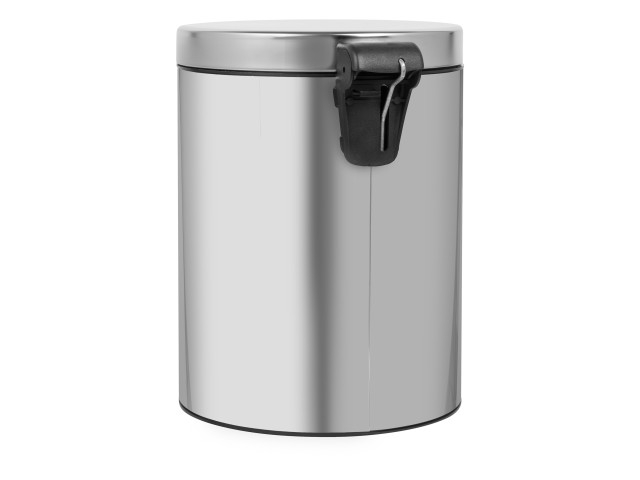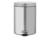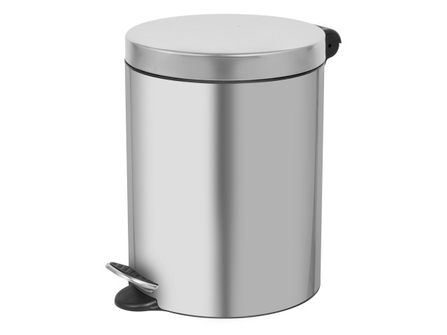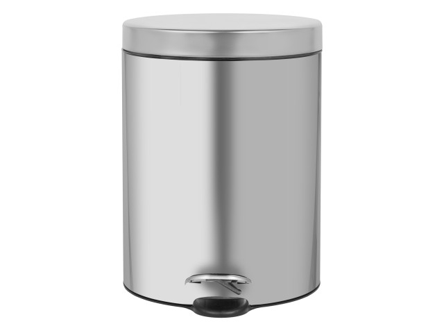 Papelera con pedal 5L en acero inoxidable con acabado espejo. Exterior en metal e interior en plástico negro. Protección de caucho en la base. Fabricada en Europa.